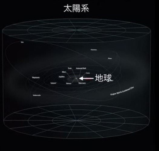 >> 2.地球はまず太陽系に属している。「水金地火木土天冥海」の聞きなれた星の名がずらりと並ぶ。