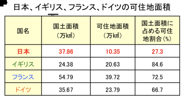 日本はドイツとかと比べると可住面積が極端に少ないんだよ