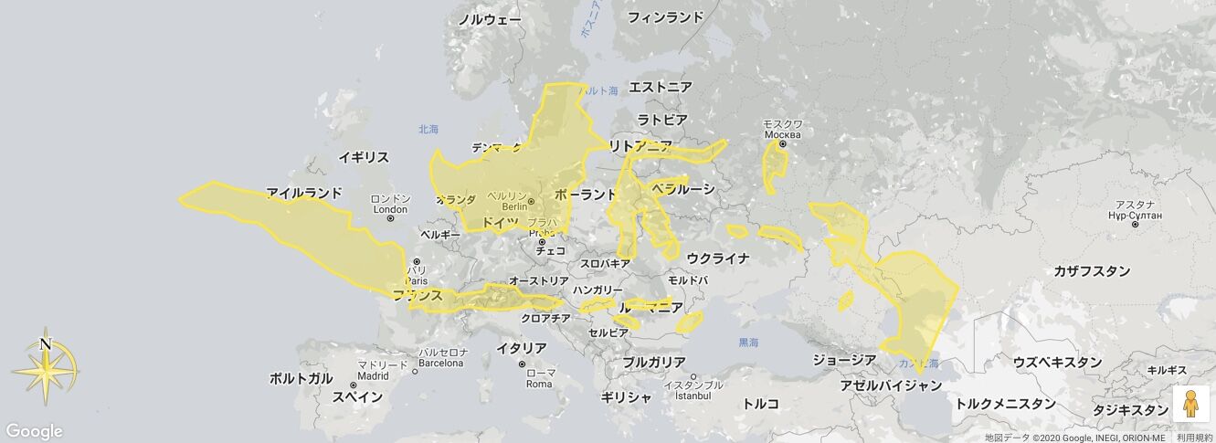 学校の教科書の地図帳に載ってる同緯度同縮尺の日本がヨーロッパでは結構大きく見えるのを思い出した