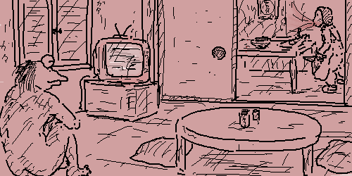 母親が台風で眠れんから家のなかでタバコ吸ってて家の中が赤くなる?