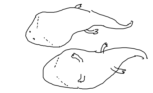 7~8mの若い頃は、足がしゅっと長くて、体はスリムなんや。これは獲物を