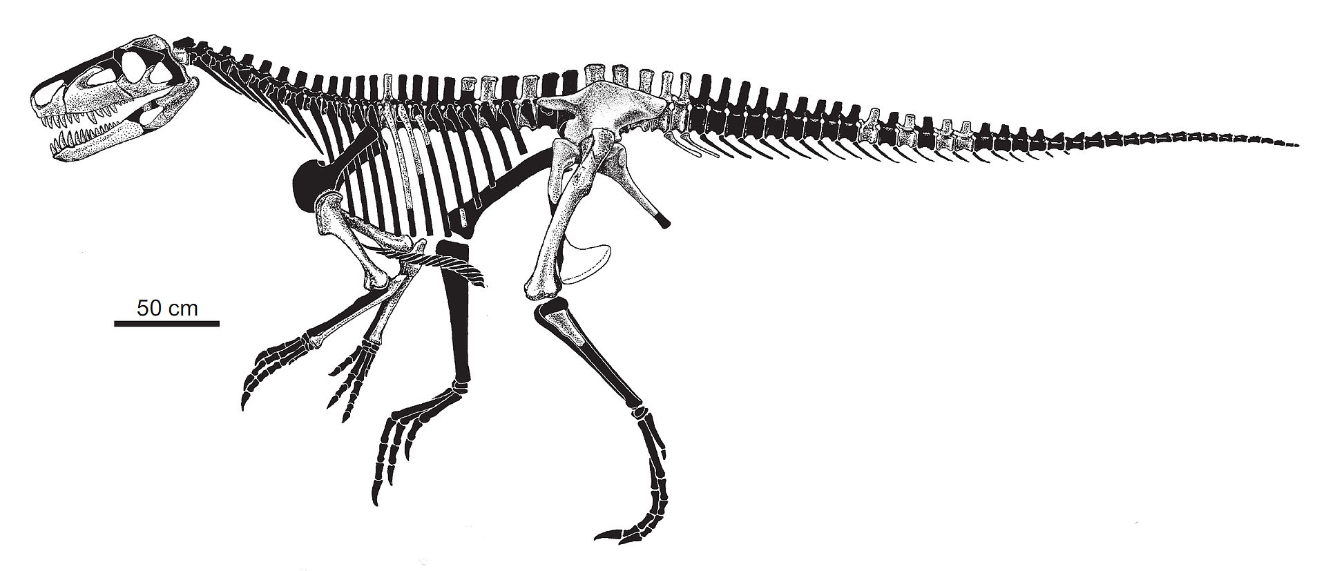 長時間、追い掛け回すのに適した体や。この時のティラノは時速50kmで走れるとされているで。これより早く動ける大型肉食竜はカルノタウルスとアルバートサウルスの2種のみや。ハンターとしては完璧な速度だけれど、