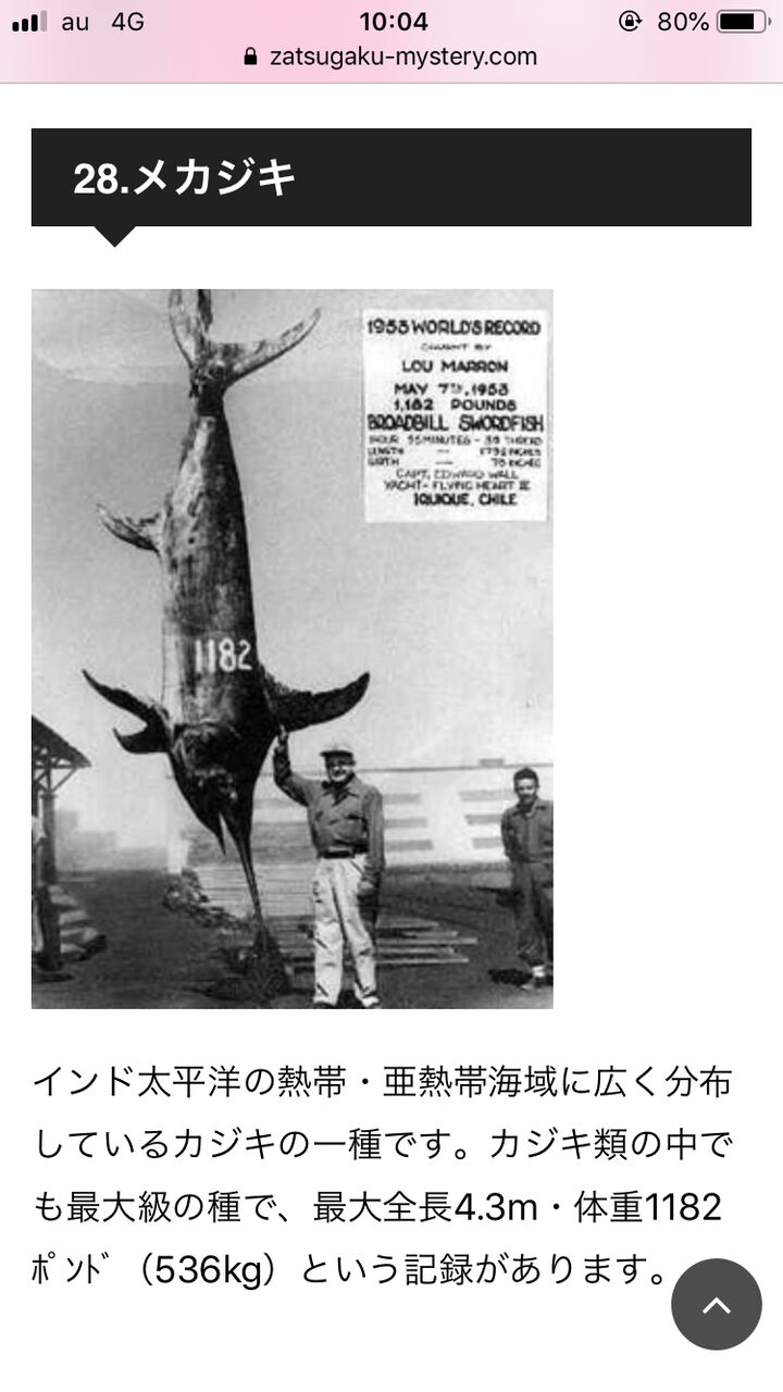 カジキの最大個体は1000kg程度や