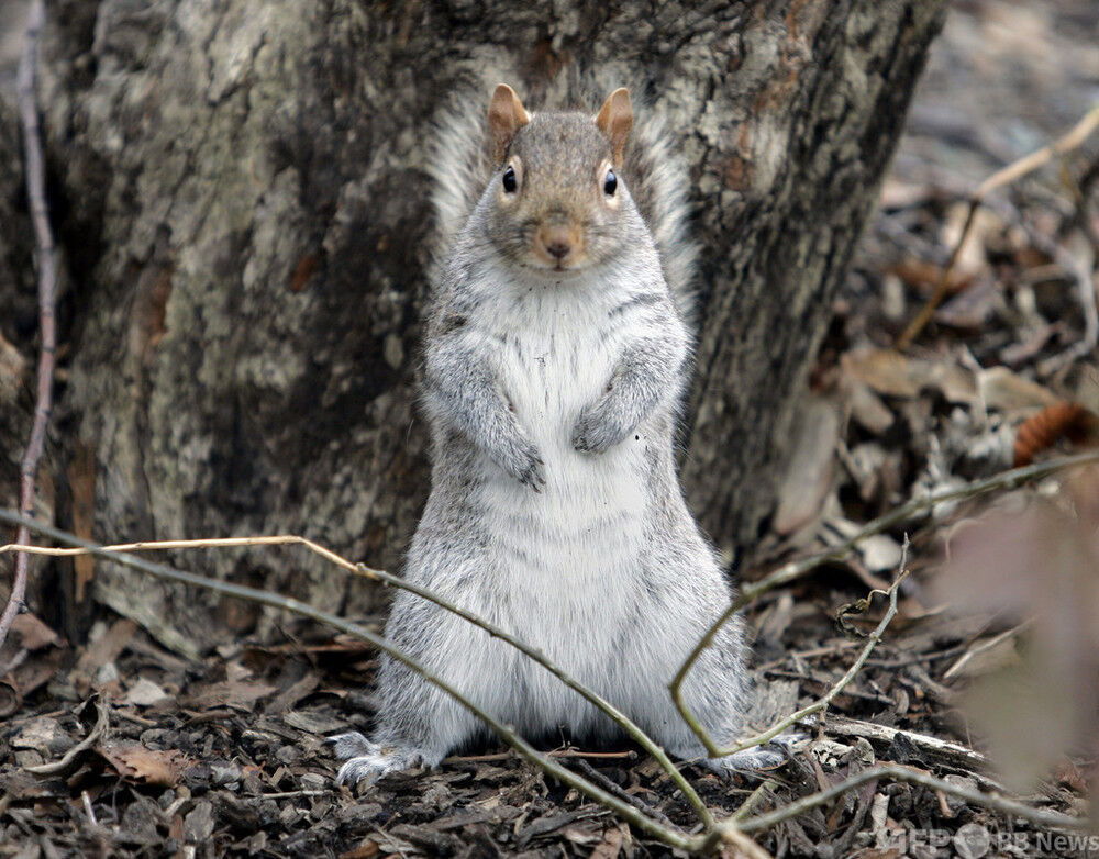 後ろ足で立つリス。米ニューヨークのセントラルパークで