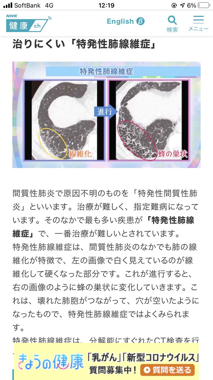 特発性肺線維症は間質性肺炎の中で多い型ではあるけどコロナの間質性肺炎とは異なる
