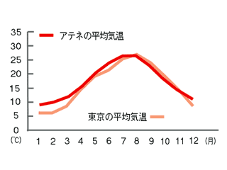 アテネ市北緯37.73°福島市北緯37.45°東京35.41°京都35.01°大阪34.41°