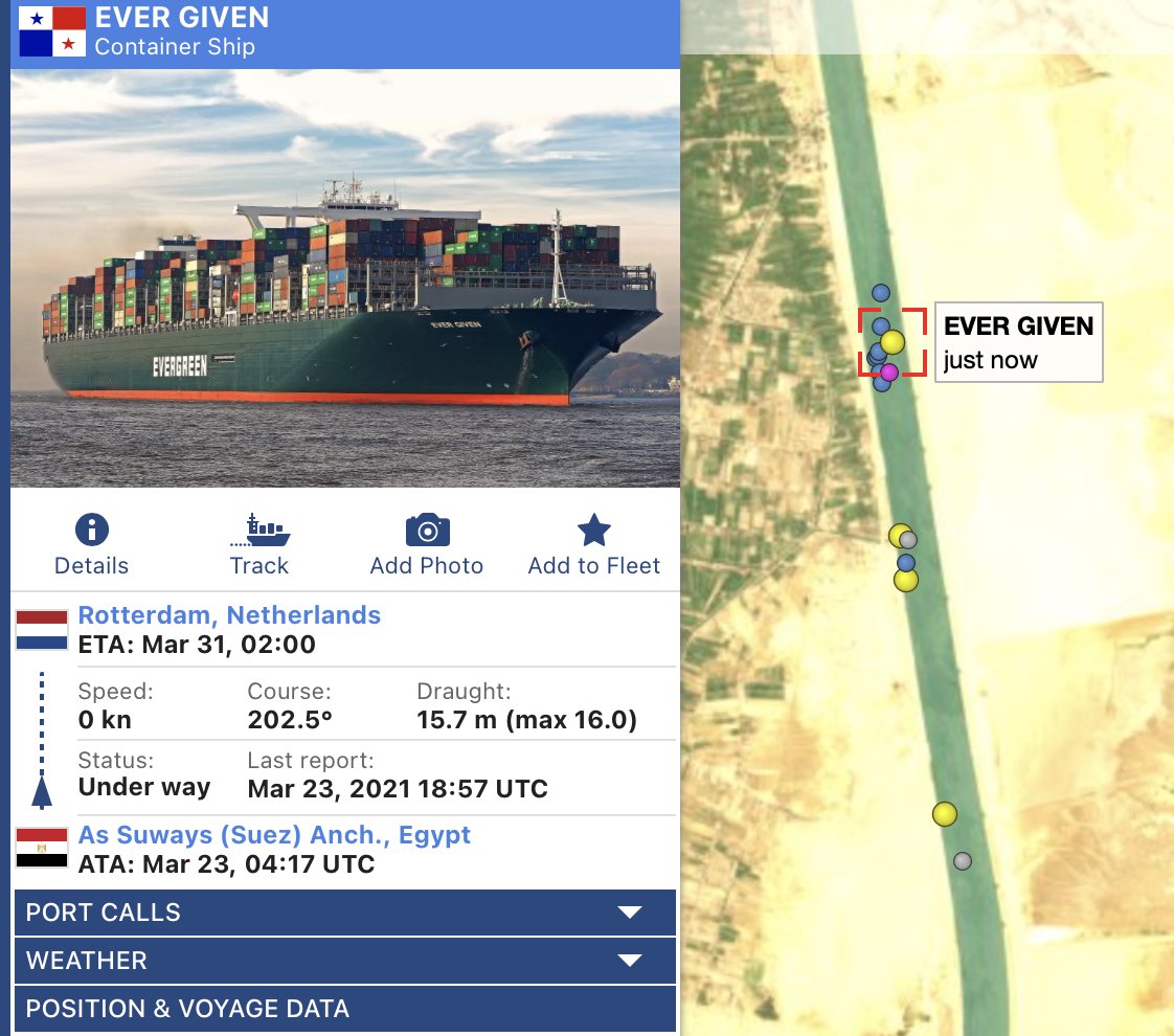 The Suez Canal, one of the most important shipping lanes in the world, is reportedly blocked because someone accidentally got stuck with their giant container ship. The photo is unreal. pic.twitter.com/I2ACkBqPi2