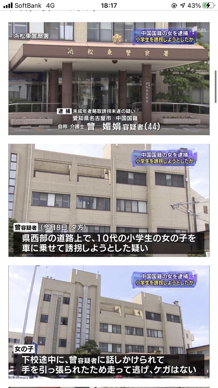 今回静岡県で子供を誘拐しようとした中国籍の女性が逮捕されましたが、