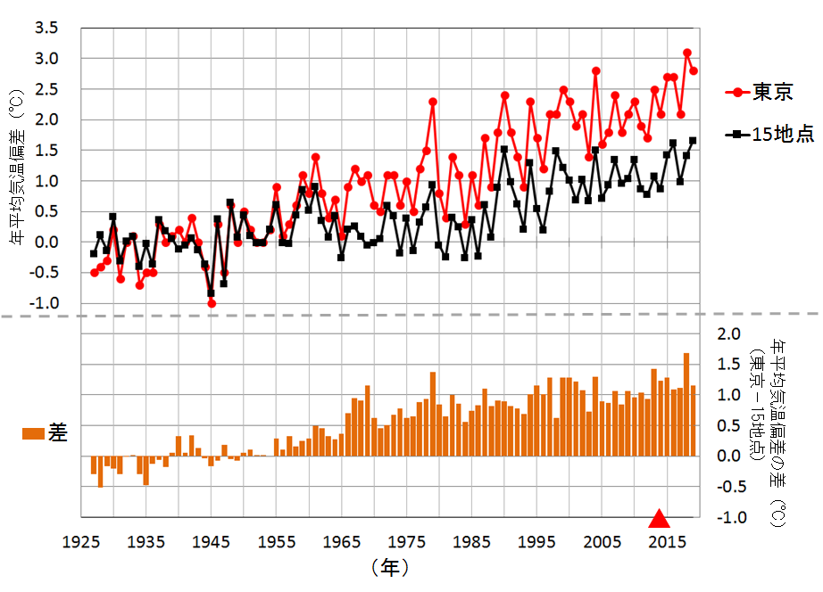 つまりヒートアイランド減少で暑くなっていることは確実